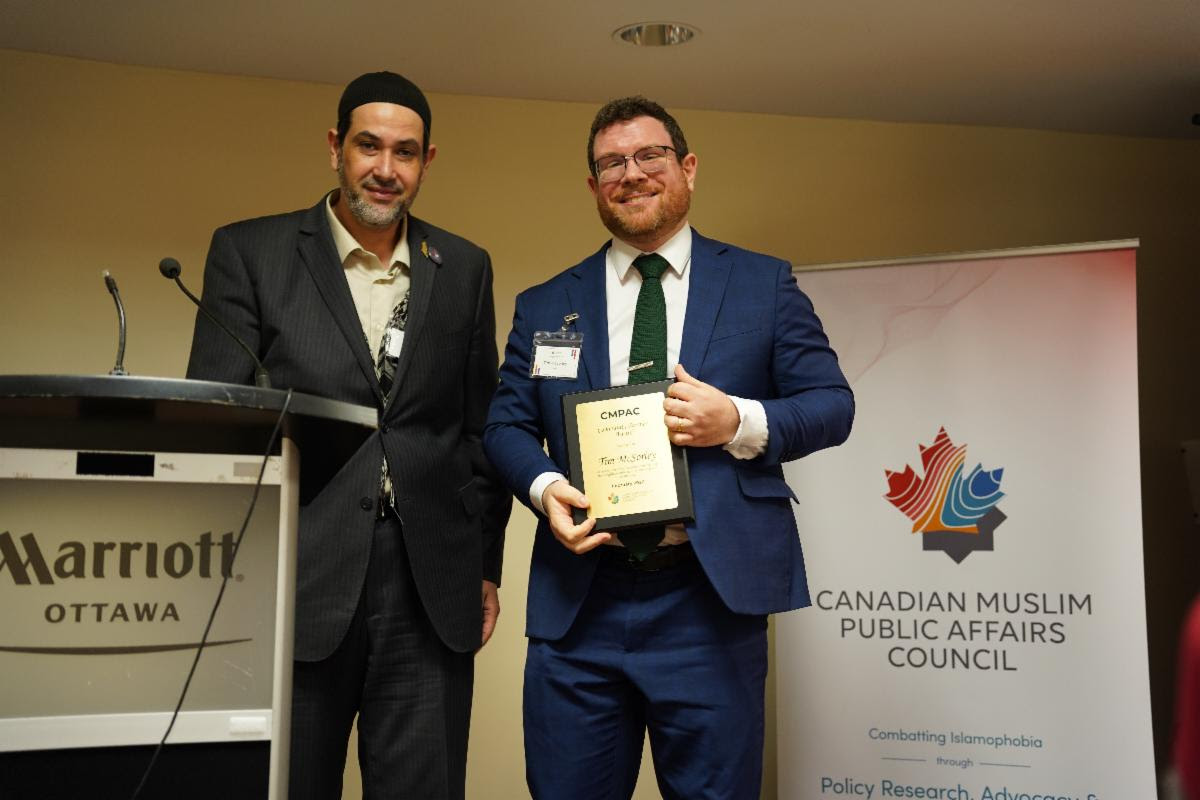 During the recent Parliamentary Iftar dinner hosted by the Canadian Muslim Public Affairs Council (CMPAC), Tim McSorley, our National Coordinator, was honoured to receive the Community Partner Award for his dedicated partnership and steadfast contributions in service of the Muslim community.
