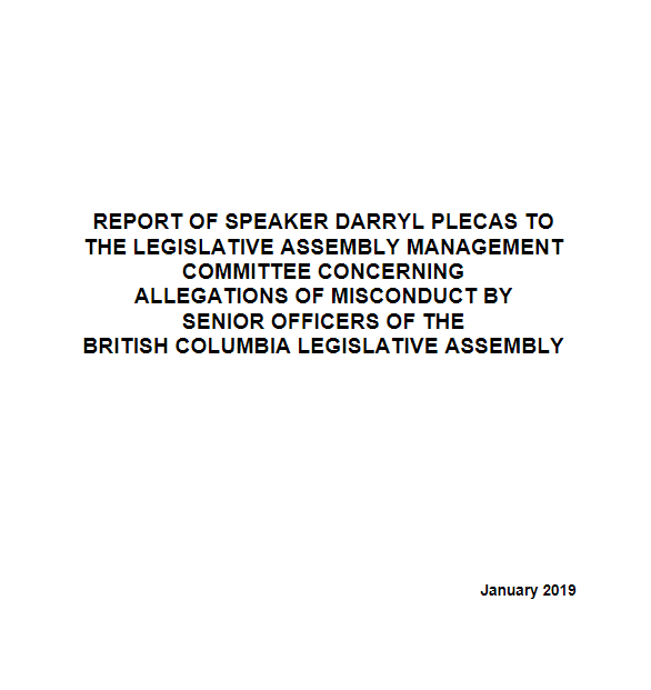 Report of Speaker Darryl Plecas concerning Allegations of Misconduct (2019)